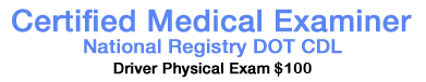 - DOT Physical Exams for commercial drivers (CDL Physical Exam) $100.00